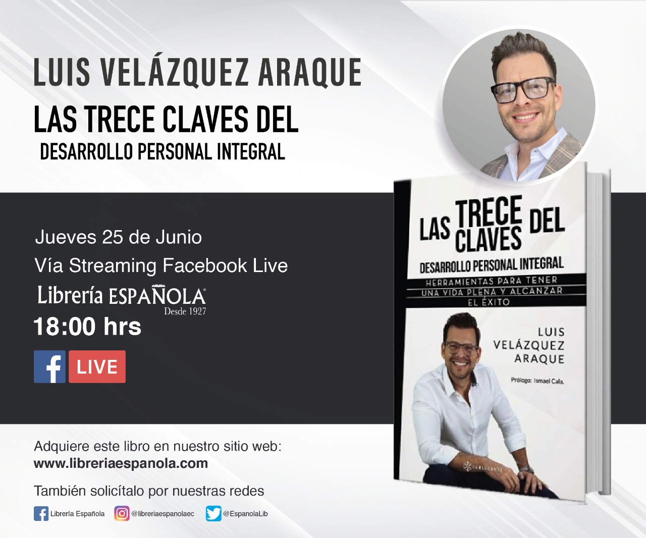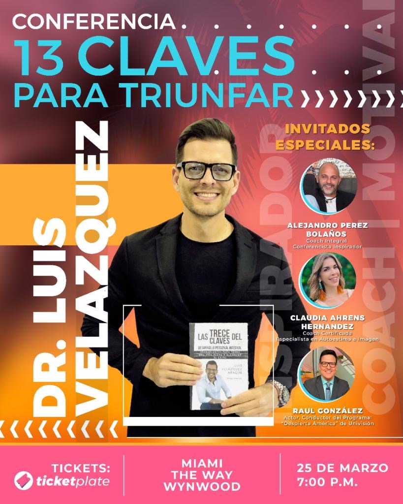 El Dr. Luis Velázquez, emprendedor, autor, catedrático, investigador y conferencista internacional, ganador del Premio Altas Conciencias, presenta su nueva conferencia basada en su exitoso libro ¨Las 13 Claves del Desarrollo Personal Integral¨, donde compartirá los elementos esenciales para lograr el crecimiento exponencial que sin duda te llevarán al éxito. Son un conjunto de habilidades que podrás poner en práctica las 24 horas del día, de allí la importancia de conocerlas muy bien para lograr un estado superior hacia el cual toda persona debería dirigirse, personas que quieren dar más de sí, obtener más, en fin, agregar valor a sus vidas.